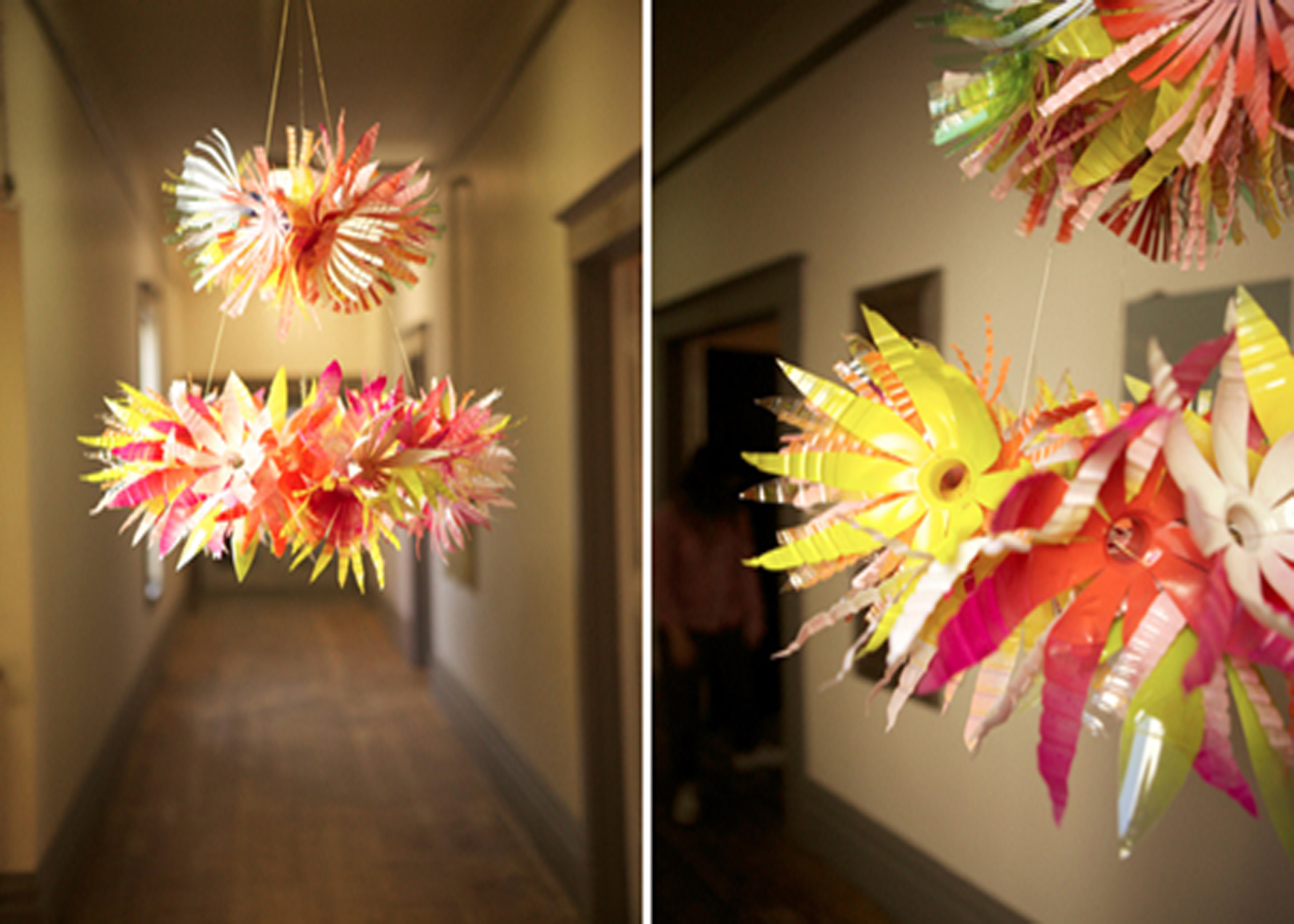 Jika rumah terlihat kosong dan sepi, manfaatkanlah botol bekas di rumah, buat gantungan yang bisa di simpan di lorong rumah atau di dalam rumah.  Rumah akan terlihat lebih cantik dan menarik karena ditemani dengan warna-warna hiasan gantungan bunga.