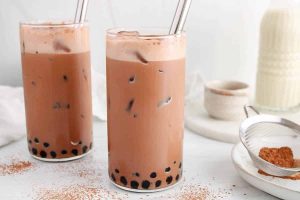 Dalam pembuatan minuman ini, dengan bubuk cokelat atau sirup cokelat dicampur dengan susu dan teh hitam (opsional). Rasanya manis, creamy, dan kaya cokelat, dengan boba kenyal yang memberikan sensasi mengunyah unik di setiap tegukan.