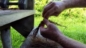 - Ambil seikat serat sabut kelapa dan letakkan di antara telapak tangan Anda.