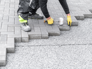 Pertama, pastikan area tempat pemasangan sudah bersih dan bebas dari batu besar, akar tanaman, atau benda keras lainnya yang bisa mengganggu proses pemasangan. Setelah itu, ratakan tanah agar permukaannya rata dan halus. Langkah ini penting untuk memastikan paving block dapat terpasang stabil. Setelah tanah diratakan, tambahkan lapisan pasir atau kerikil halus sebagai dasar.Lapisan ini berfungsi untuk menahan paving block dengan baik dan membantu menyerap beban. Ratakan pasir atau kerikil hingga permukaannya benar-benar datar dan siap untuk pemasangan paving block. - Mulai Pemasangan Paving Block :