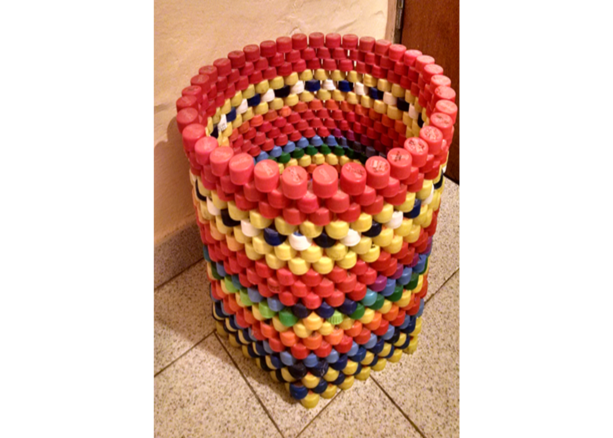 29. Keranjang Sampah Warna – Warni Dari Tutup Botol