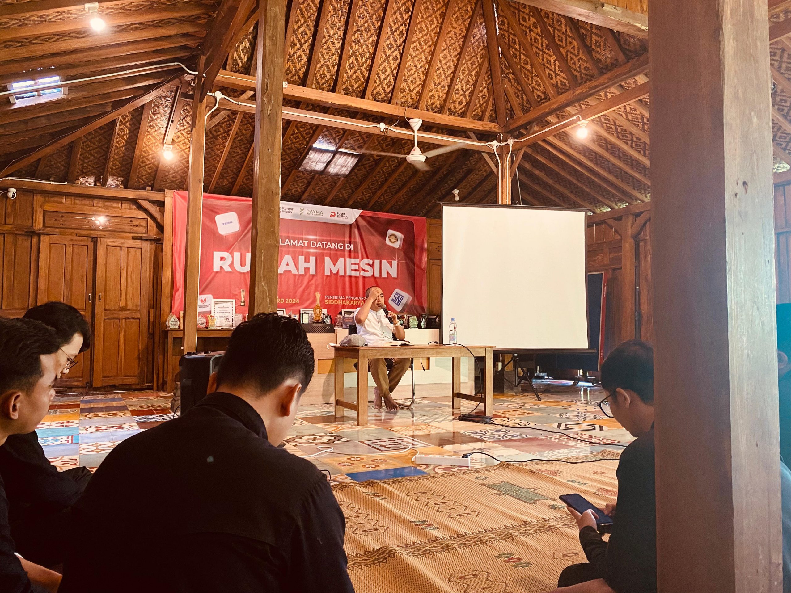Kamis, 9 Desember 2025, seluruh karyawan CV Rumah Mesin berkumpul di Gedung Limasan Barat untuk mengikuti kajian pagi bertema Ilmu Adalah Kunci Dunia Akhirat. Acara ini dipandu oleh Mas Diki sebagai MC, dimulai dengan pembukaan dan dzikir pagi bersama Mas Effendi.