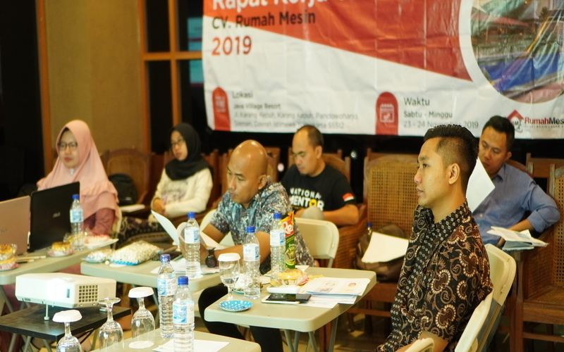 Rangkaian kegiatan rapat kerja tahunan ini diikuti oleh seluruh management baik dari Direktur Rumah Mesin, HR Manajemen, Keuangan, Sales, dan Digital Marketing, serta beberapa staff dari Rumah Mesin Grup. Secara umum gambaran pembahasan dalam rapat kerja tahun 2019 adalah evaluasi kinerja seluruh divisi yang sudah berjalan sejak Desember 2018 hingga November 2019. Selain evaluasi kinerja yang telah berjalan, juga dibahas mengenai rencana kerja 2020 yang akan dimulai dari Desember 2019 hingga November 2020.
