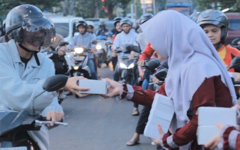 Selain jajanan pasar dan kurma, di suatu kesempatan Rumah Mesin juga membagikan takjil berupa nasi kotak. Seperti yang telah terlaksana Jum’at (10/05/2019) lalu, 150 kotak nasi dan 35 bungkus makanan ringan dibagikan kepada para pengguna jalan dengan sasaran utama pengendara sepeda, pekerja yang sudah tua, dan penarik becak.